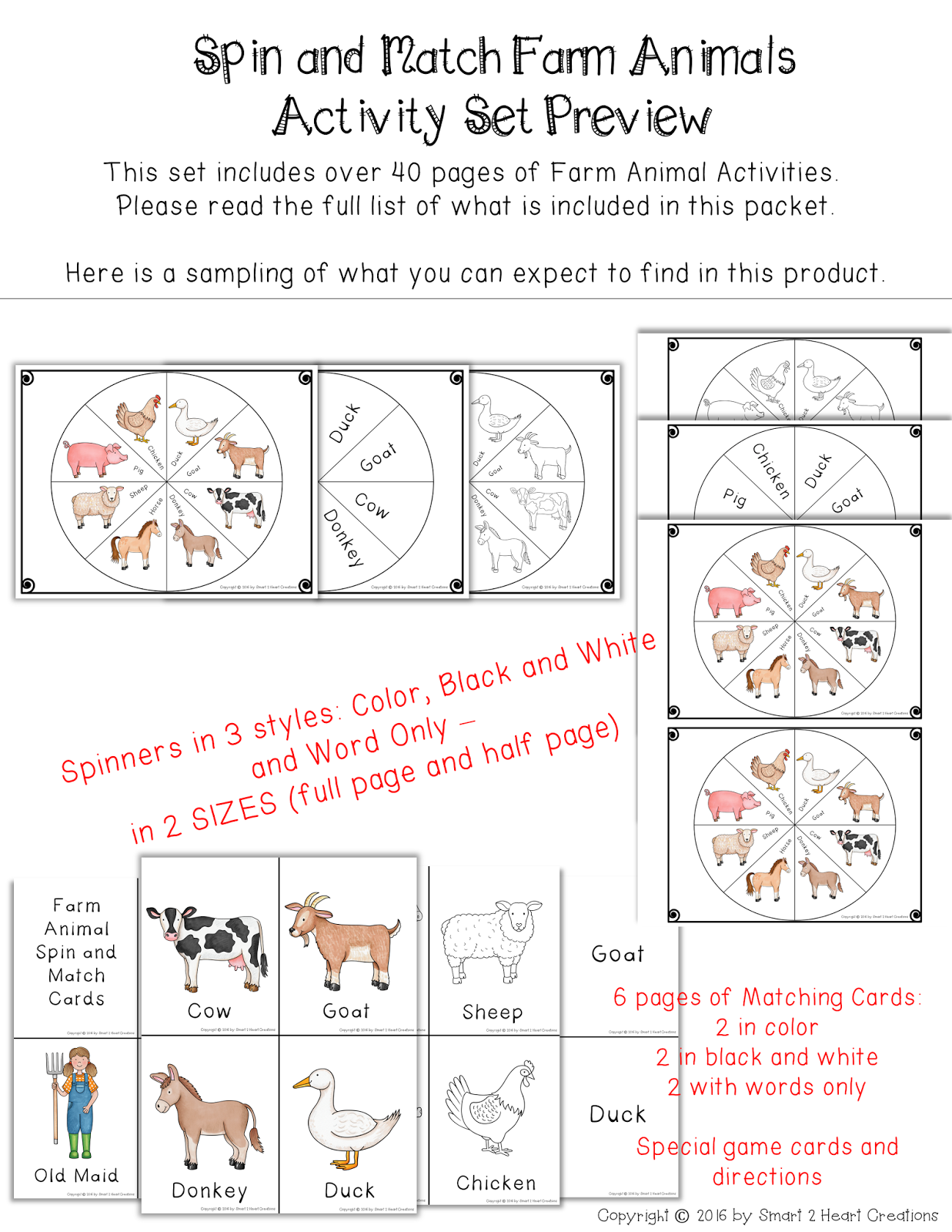 Spin and Match Farm Animals Activity Set includes over 30 pages of